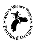 Eight inch wiener side cut on a hearty pioneer style bun covered in blue cheese sauce, chopped scallions and topped off with Willy's own buffalo sauce